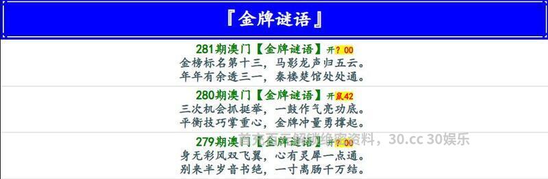 281期:绝杀三肖【虎蛇猴】开:羊47准 |
