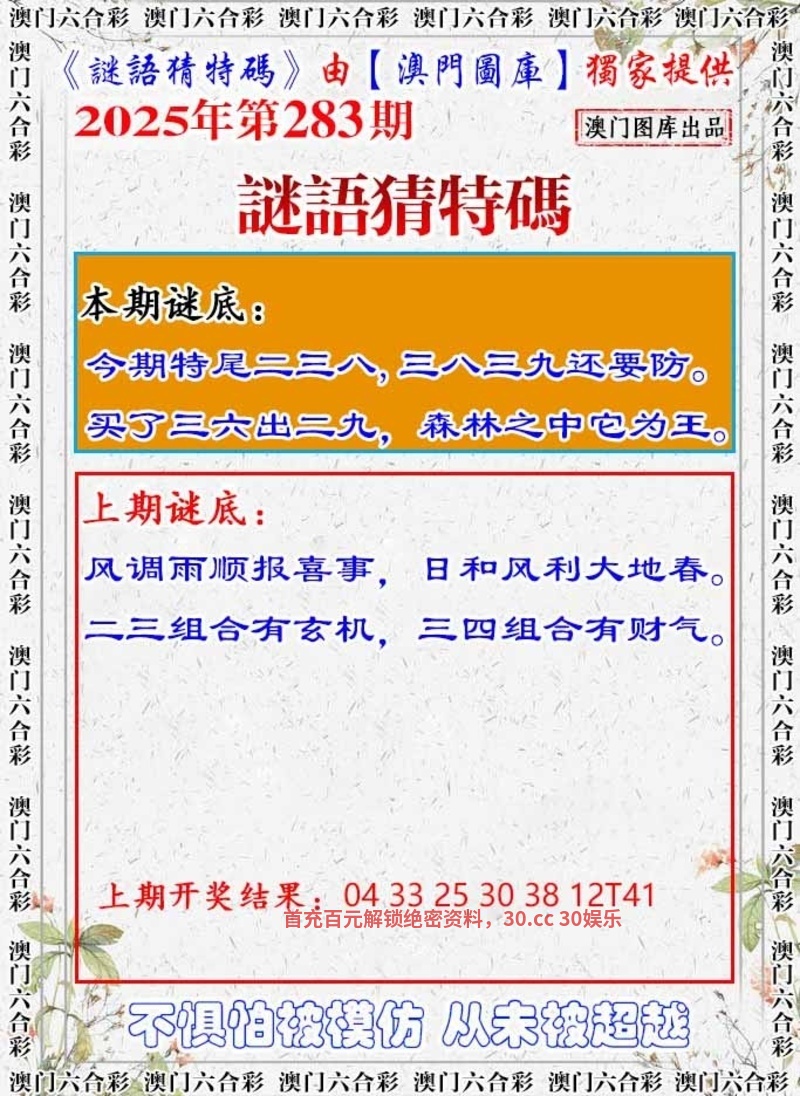 283期:六肖中特【蛇羊兔牛狗虎】开:鸡45错 |